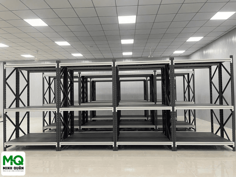 Minh Quân mang đến giải pháp kệ trung tải tối ưu với khả năng tư vấn thiết kế phù hợp thực tế kho hàng. Hệ thống kệ có tải trọng đa dạng từ 200kg đến 700kg mỗi tầng, dễ dàng điều chỉnh số tầng và kích thước để đáp ứng linh hoạt nhu cầu lưu trữ khác nhau. Sử dụng vật liệu thép sơn tĩnh điện chất lượng cao, sản phẩm không chỉ bền bỉ mà còn đảm bảo an toàn tuyệt đối trong quá trình vận hành lâu dài.